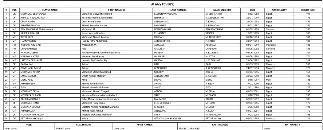 كشف الاتحاد الدولي لكرة القدم فيفا، عن قائمة الأهلي النهائية المشاركة في كأس العالم للأندية 2025.