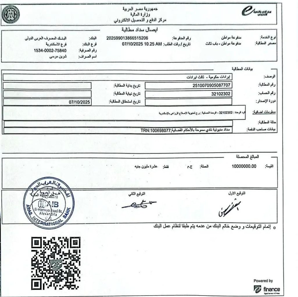 وأكد الغنيمي أن هذه الخطوة تأتي في إطار التزام نادي سموحة بخطة تسوية المديونيات المتراكمة، وحرص المجلس على إنهاء جميع الملفات المالية العالقة بشكل قانوني ومنظم.